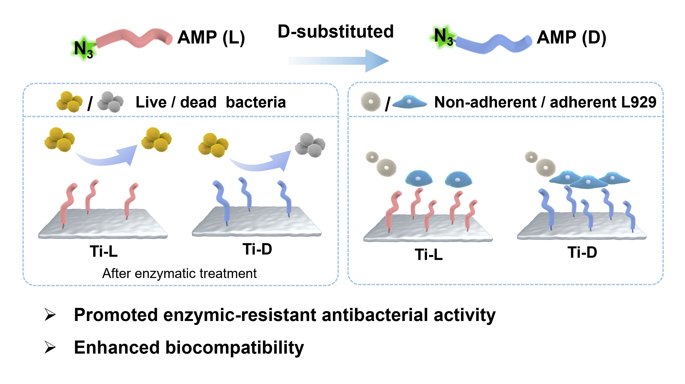 Titanium Implant Functionalized with D-Amino Acid-Substituted Antimicrobial Peptides for Infection Resistance and Enhanced Biocompatibility