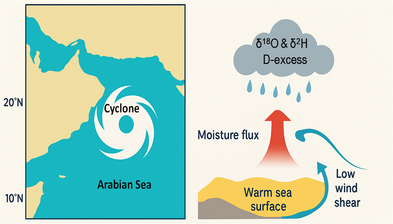 Stable Isotopic and Geospatial Approach for Evaluating the Frequent Occurrence of Cyclonic Events Over the Arabian Sea