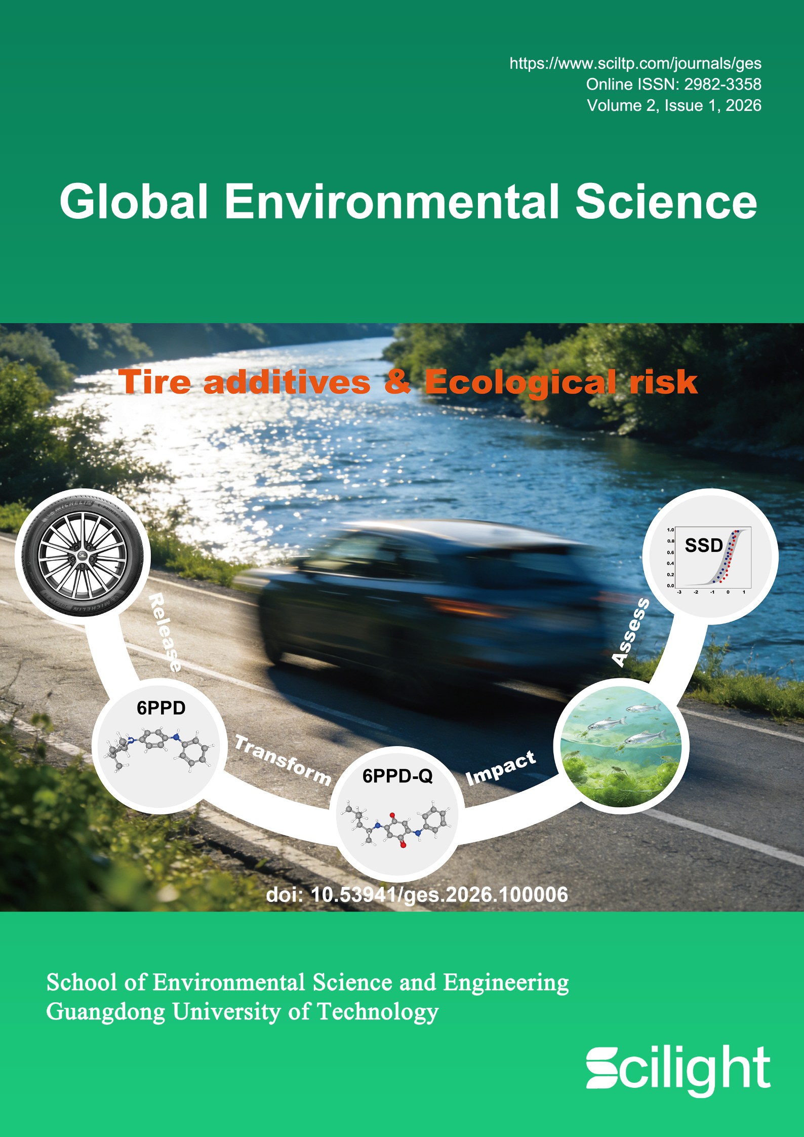 Back CoverBack cover story: This study reveals the global occurrence and aquatic toxicity of tire-derived 6PPD and 6PPD-quinone. Using species sensitivity distributions, environmental benchmarks were established and ecological risks were quantified. 6PPD-quinone exhibits ultra-high toxicity to salmonids and considerable global risk, supporting targeted monitoring and management of tire additives.