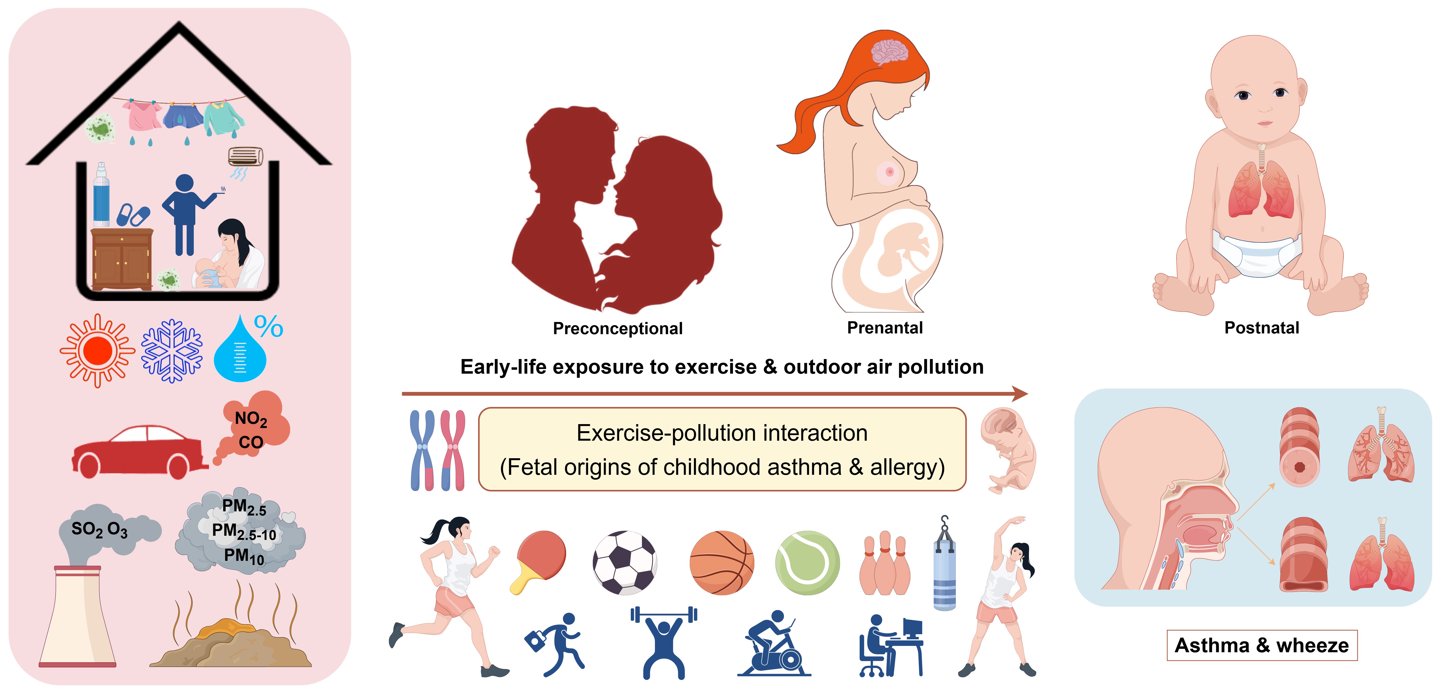 Combined Effects of Parental and Childhood Physical Activity and Air Pollution on Childhood Asthma and Wheezing