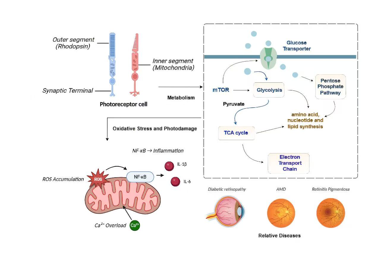 Hanna, J.; David, L.A.; Touahri, Y.; Fleming, T.; Screaton, R.A.; Schuurmans, C. Beyond Genetics: The Role of Metabolism in Photoreceptor Survival, Development and Repair. Front. Cell Dev. Biol. 2022, 10, 887764. https://doi.org/10.3389/fcell.2022.887764.