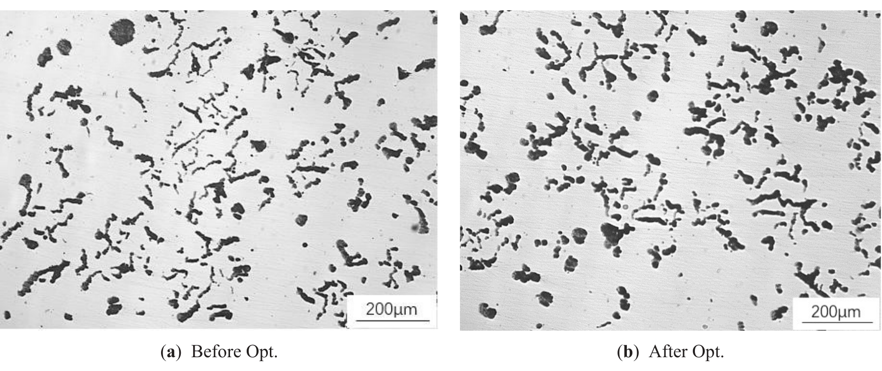 | Before Opt. | 1 | 4.29 | 50 | 1160 | 538 | 84.2 | 80 | 95 | Shrinkage cavity |