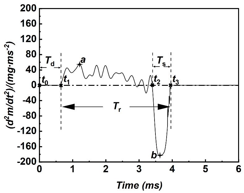 For convenience, the following relevant parameters are defined in combination with Figure 5. The valve opening delay (Td) is defined as the interval between the onset of the electromagnetic valve actuation (t0) and the injection start point (t1). The injection duration (Tr) is defined as the period from the start of injection (t1) to the complete termination of the injection process (t3). The valve closing delay (Tc) is defined as the interval between the onset of needle valve seating (t2) and the end of injection (t3).