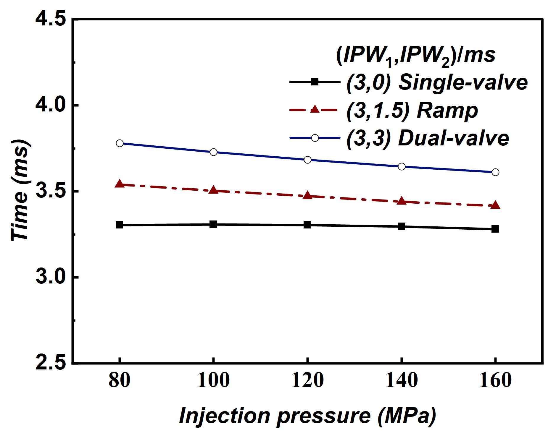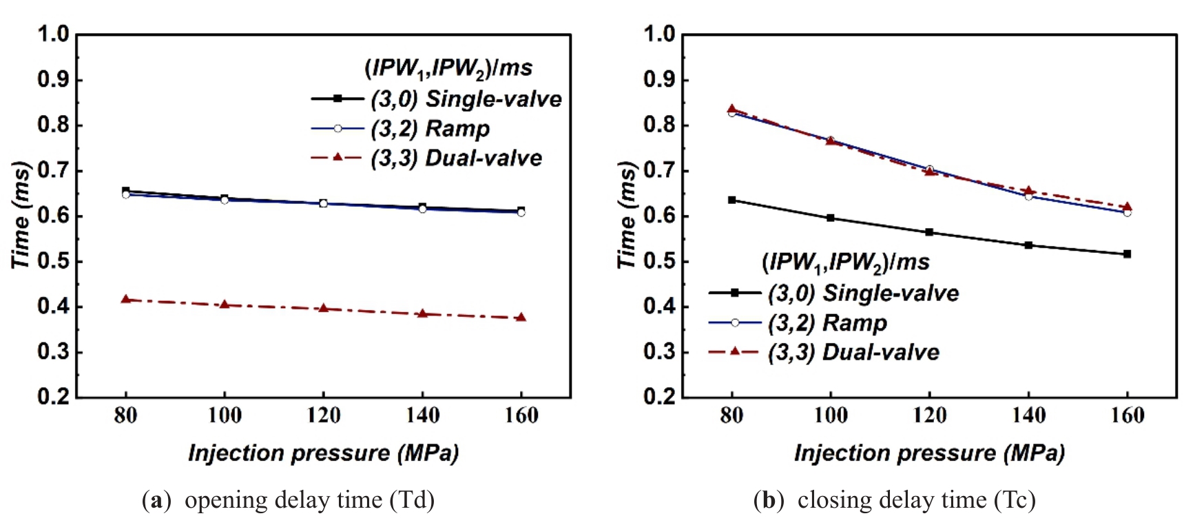 3.3.Effect of Injection Pressure on Injector Opening and Closing Delays