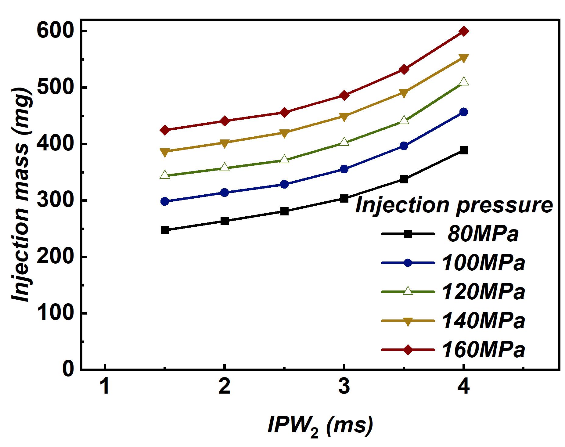 Figure 10.Fuel injection mass of rectangular injection mode with various injection pressures.