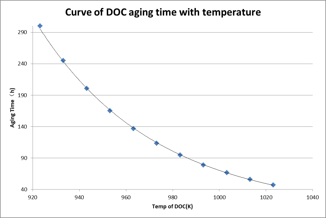 | Temp of DOC (℃) | Actual Aging Time (h) | Model Aging Time (h) | Relative Error |