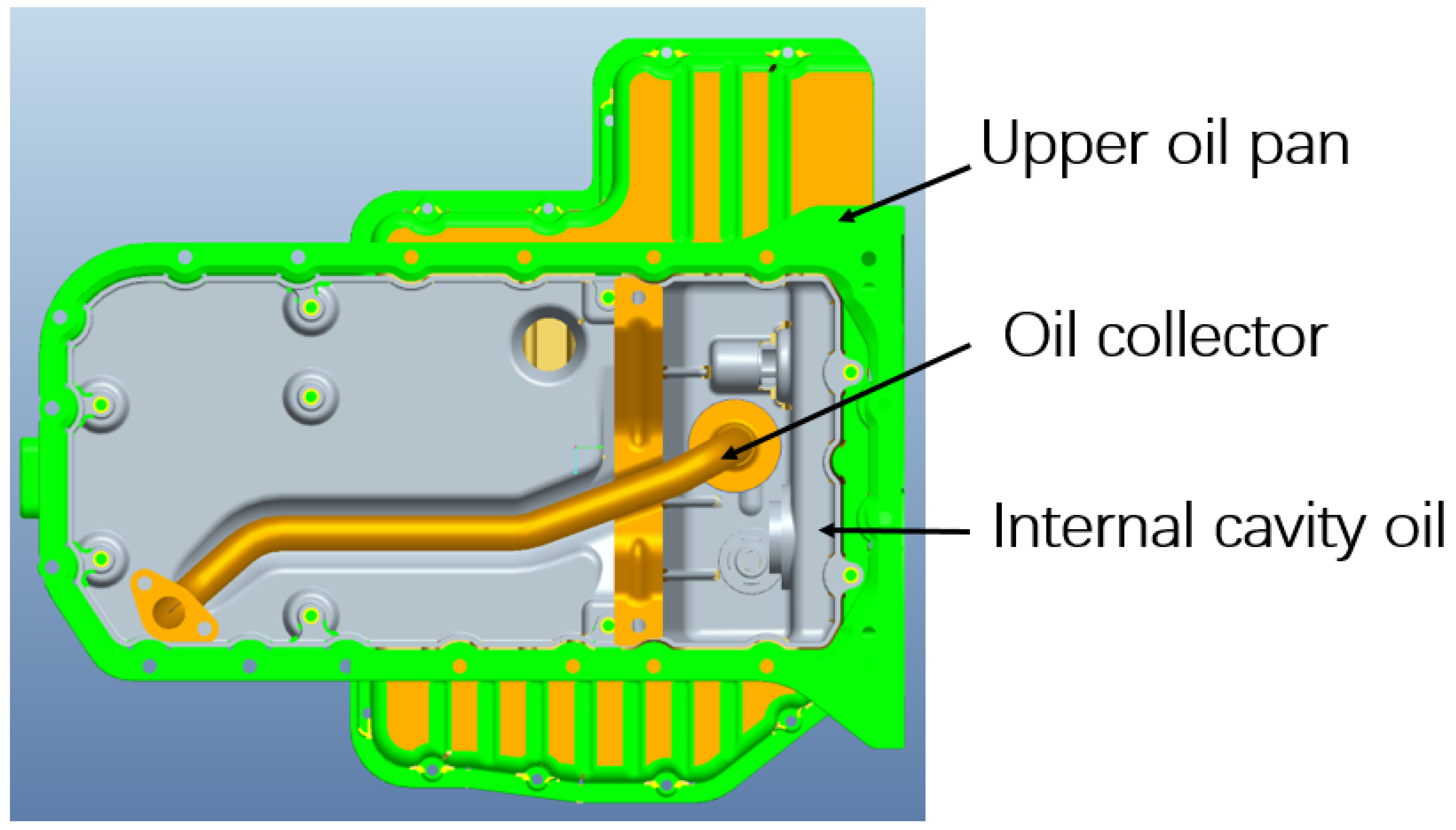 This paper studied the design and development of a dual-cavity oil pan for an internal combustion engine. By analyzing the working principle of the dual chamber oil pan and considering the target requirements, relevant parameters are determined to meet the requirements of rapid oil temperature increase, friction reduction, and fuel consumption reduction.