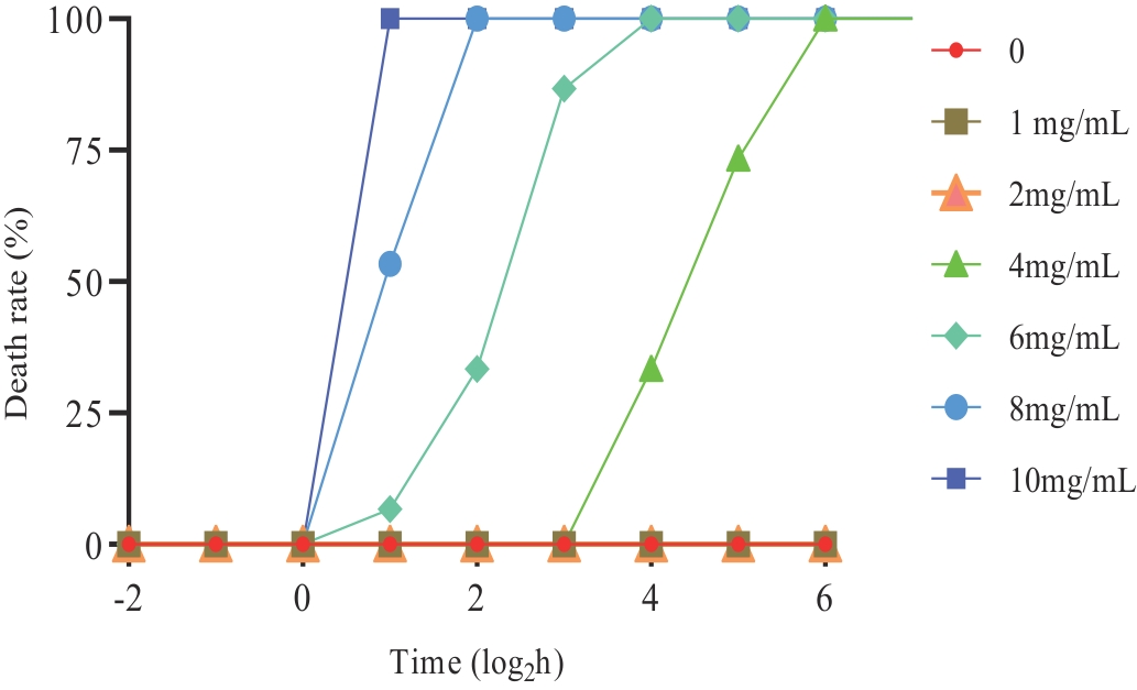 Figure 3.The death rate of planaria with time under different QFY polysaccharide concentrations.