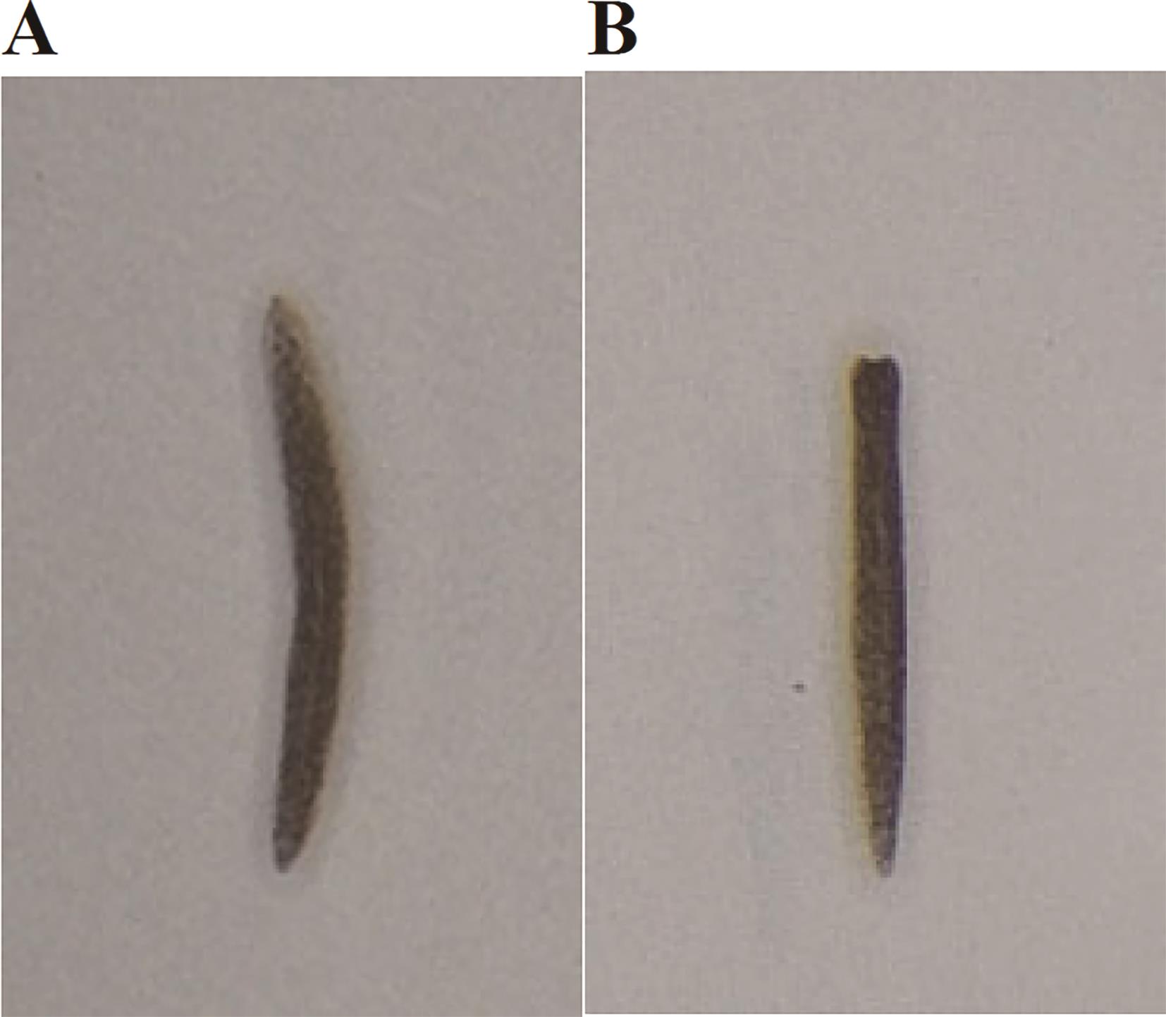 Figure 4.Photos of planaria before decapitating (A) and after decapitating (B).