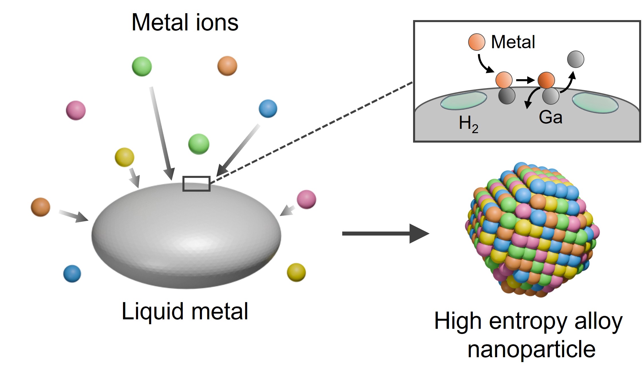 Kinetic Trapping of High-Entropy Alloys via Fast Reduction and Mixing in a Liquid Metal