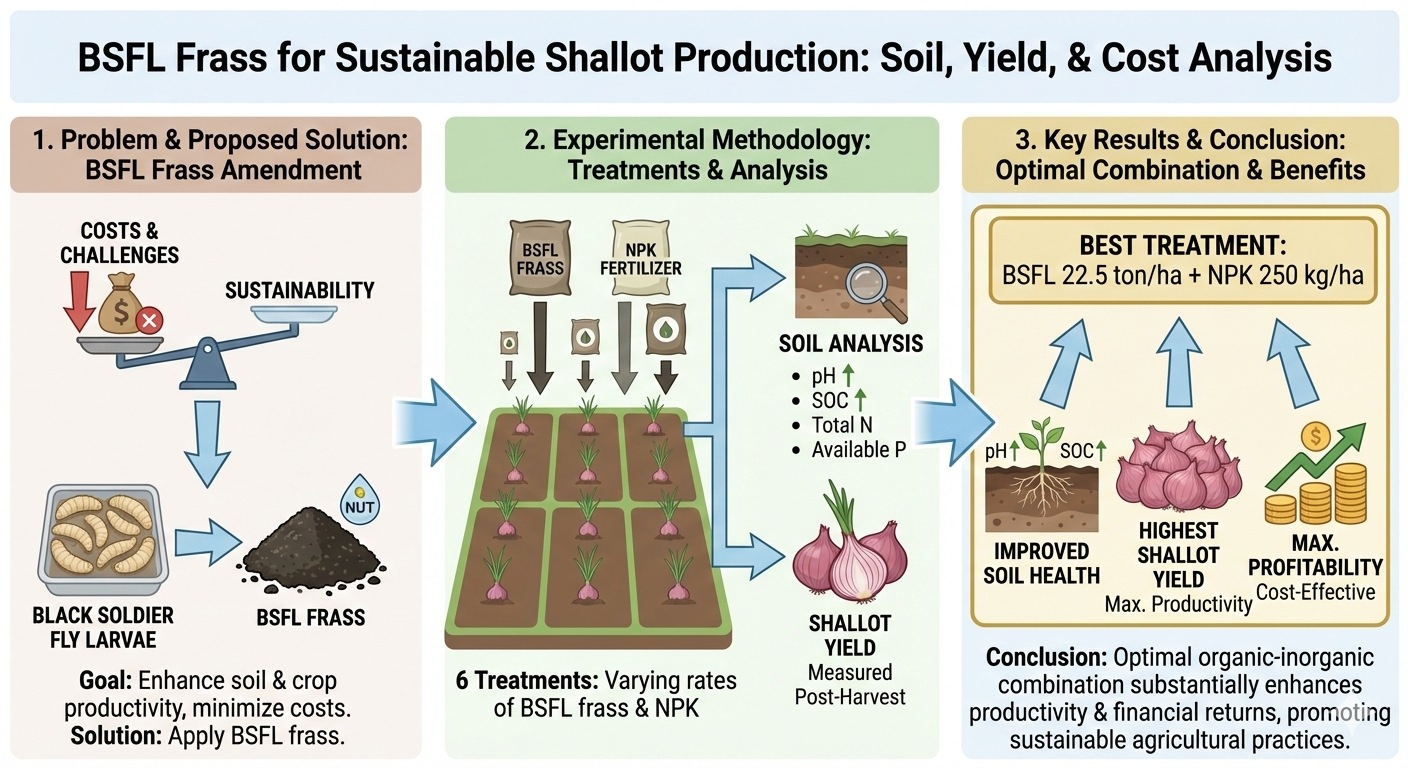 Sustainable Agriculture through Black Soldier Fly Larvae Frass: Impacts on Soil Properties, Shallot Crop Productivity, and Cost Analysis