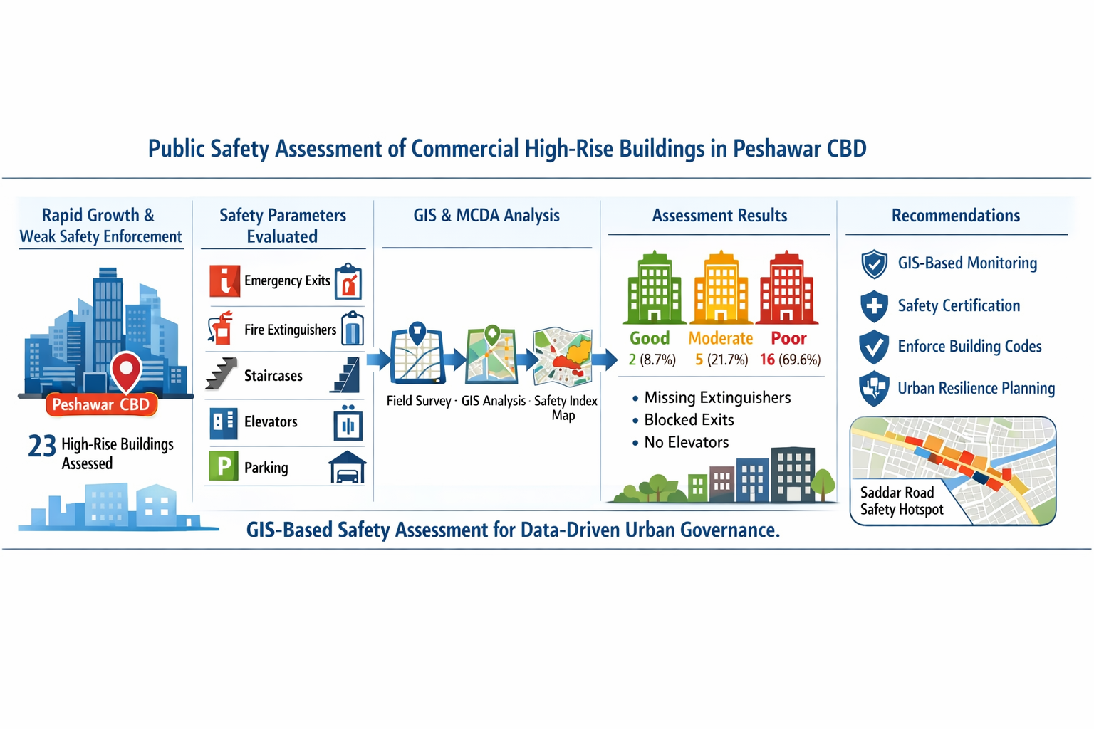 Assessment of Public Safety Standards in Commercial High-Rise Buildings of the Central Business District of Peshawar, Pakistan